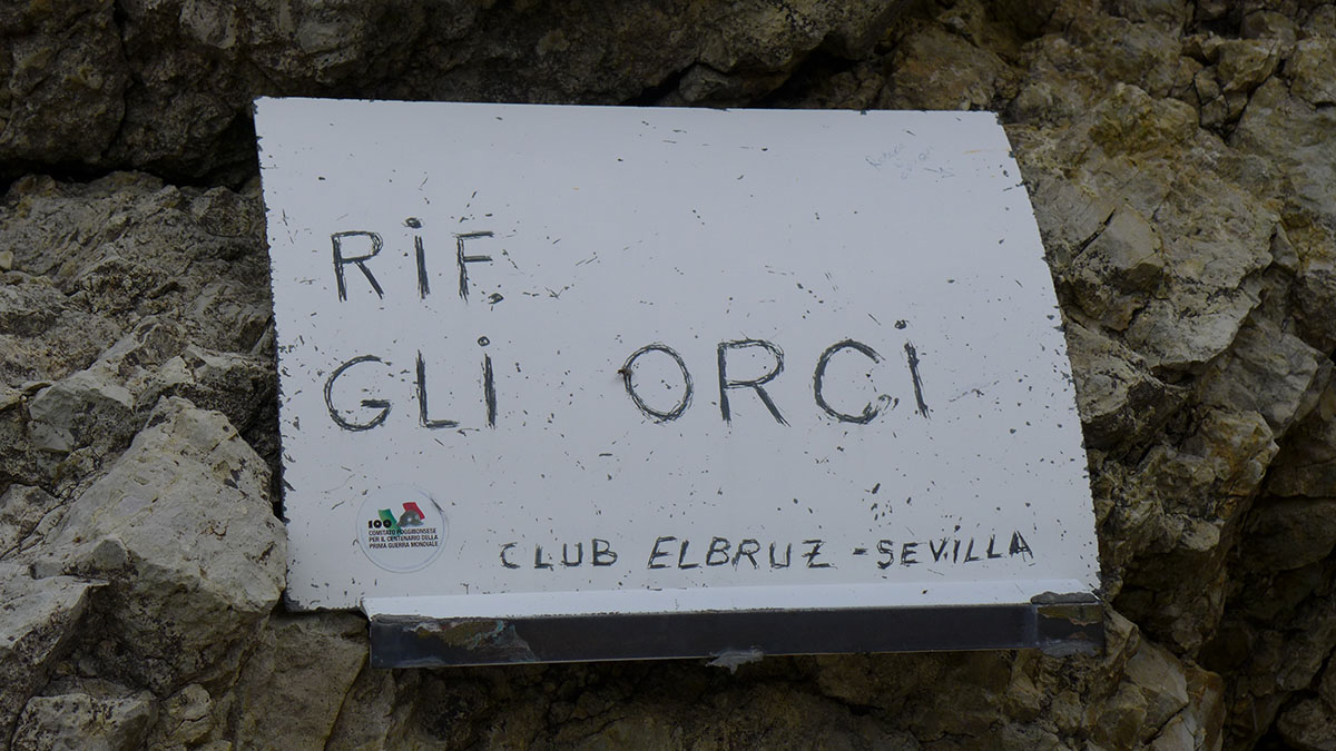 Esta gran mole tiene una vía ferrata que, por su cuerda, asciende a cumbre. Es una de las grandes ferratas de Dolomitas, la de Giovanni Lipella.